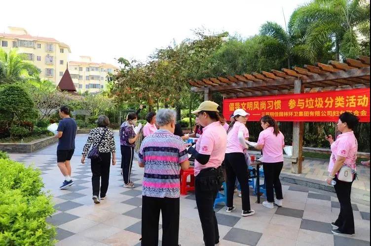 為進(jìn)一步強(qiáng)化小區(qū)居民對(duì)垃圾分類的認(rèn)識(shí),不斷提高居民愛護(hù)環(huán)境、保護(hù)環(huán)境的意識(shí),養(yǎng)成垃圾分類的好習(xí)慣,帶動(dòng)更多人參與到垃圾分類的行動(dòng)中來(lái),助力三亞創(chuàng)建全國(guó)文明城市。11月17日9時(shí),三亞明佳集團(tuán)黨支部、工會(huì)、婦聯(lián)、共青團(tuán)聯(lián)合在南新悅城小區(qū)開展“倡導(dǎo)文明風(fēng)尚習(xí)慣 參與垃圾分類活動(dòng)”為主題的垃圾分類宣傳活動(dòng)。