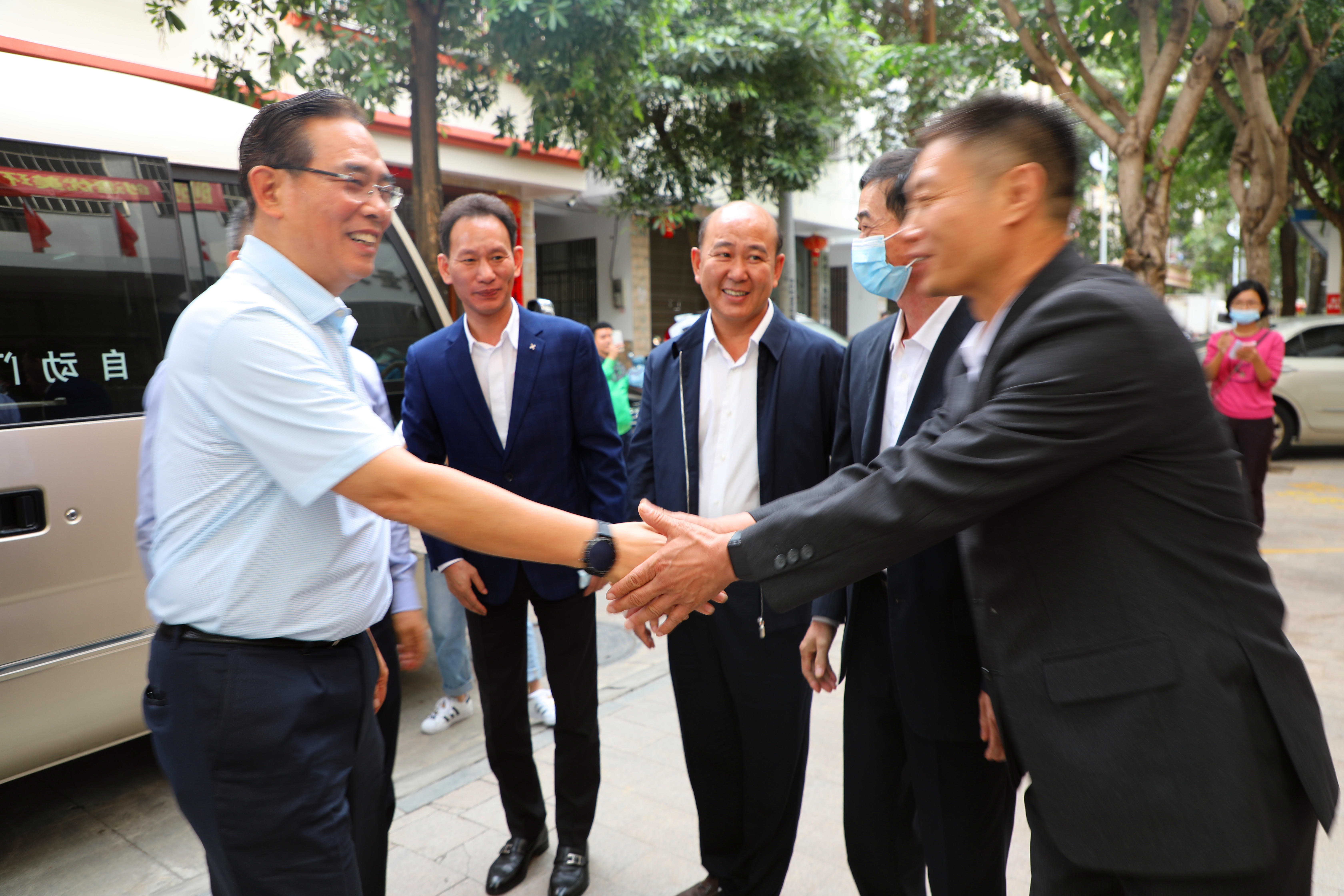 董事長陳明、總裁陳云及工會主席高斐斐在集團(tuán)門前迎接蔡副主席的到來。