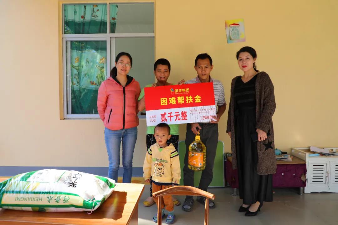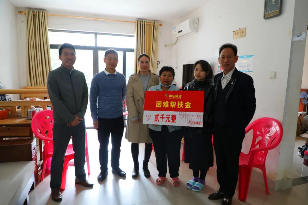 2021年1月12日,明佳集團黨支部書記、董事長陳明,副總裁羅京軒,工會主席高斐斐,副主席李萍及婦聯(lián)主席熊牡丹一行前往慰問困難職工,為他們每人送上了2000元的幫扶金以及米、油等生活物資,還貼心地為有孩子的職工們送去一套學(xué)習(xí)桌椅。