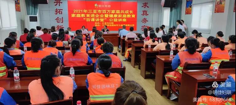 為引導(dǎo)廣大婦女帶動(dòng)家庭成員大力培育新時(shí)代家庭觀,推動(dòng)社會(huì)主義核心價(jià)值觀落細(xì)落小落實(shí)到家庭,切實(shí)落實(shí)家庭教育立德樹人的根本任務(wù),根據(jù)省婦聯(lián)“家家幸福安康工程”部署,結(jié)合“我為婦女群眾辦實(shí)事”實(shí)踐活動(dòng)。2021年7月20日下午15時(shí)30分,由市婦聯(lián)主辦、明佳婦聯(lián)協(xié)辦的2021年三亞市百萬(wàn)家庭共成長(zhǎng)家庭教育進(jìn)企業(yè)暨健康家庭教育“百課講堂”公益培訓(xùn)課在明佳三樓會(huì)議室成功舉行,培訓(xùn)內(nèi)容為家庭教育知識(shí)和女性健康知識(shí),明佳集團(tuán)80余名職工參加了此次培訓(xùn)。