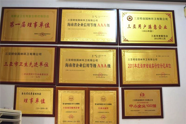 目前母公司連續(xù)五年被海南省企業(yè)信用評定中心評定為信用AAA等級單位,并榮獲中國清潔清洗行業(yè)國家一級資質(zhì)、城市環(huán)境衛(wèi)生經(jīng)營服務(wù)A級資質(zhì)、城市園林綠化三級資質(zhì),被中國清潔行業(yè)推選為國家三星級企業(yè)、十佳清潔服務(wù)企業(yè)、杰出貢獻(xiàn)企業(yè),并榮獲2016年中國清潔行業(yè)百強(qiáng)品牌,成為中國清潔行業(yè)常務(wù)理事單位、中國衛(wèi)生有害生物防制協(xié)會會員單位、中國城市環(huán)境衛(wèi)生協(xié)會會員單位、海南省衛(wèi)生協(xié)會理事單位、三亞市環(huán)境保護(hù)協(xié)會副會長單位,公司先后多次獲得國家、省、市獎勵和表彰40余次,成功在海南省股權(quán)交易中心掛牌,代碼:90777,并積極籌劃在新三板上市,已真正成為海南省環(huán)衛(wèi)行業(yè)的龍頭企業(yè)。