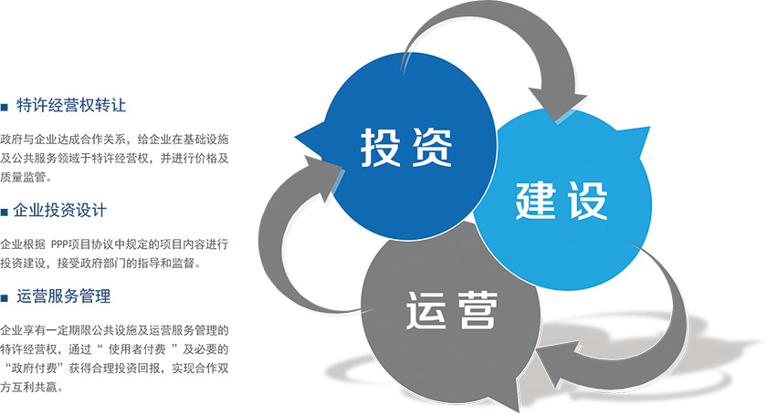 ■ 運(yùn)營(yíng)服務(wù)管理企業(yè)享有一定期限公共設(shè)施及運(yùn)營(yíng)服務(wù)管理的特許經(jīng)營(yíng)權(quán),通過“ 使用者付費(fèi) ”及必要的“政府付費(fèi)”獲得合理投資回報(bào),實(shí)現(xiàn)合作雙方互利共贏。